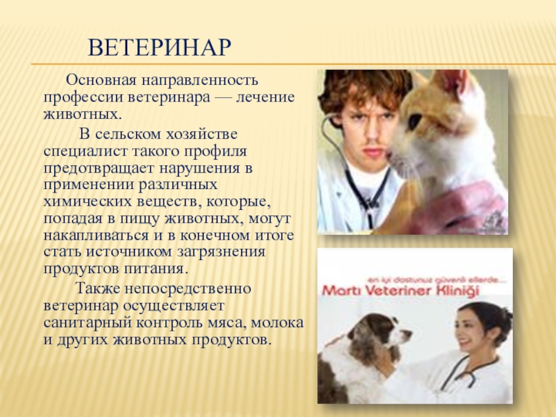В сельском хозяйстве специалист такого профиля предотвращает нарушения в применении различных химических веществ, которые, попадая в пищу животных, могут накапливаться и в конечном итоге стать источником загрязнения продуктов питания.