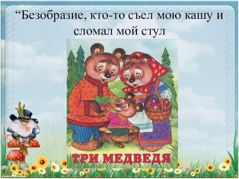 Слайд 33“Безобразие, кто-то съел мою кашу и сломал мой стул