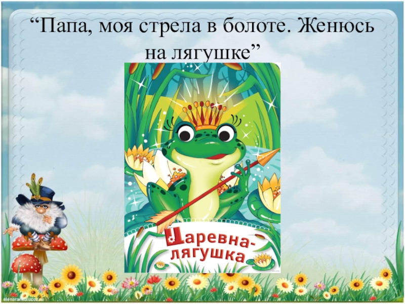 Слайд 34“Папа, моя стрела в болоте. Женюсь на лягушке”