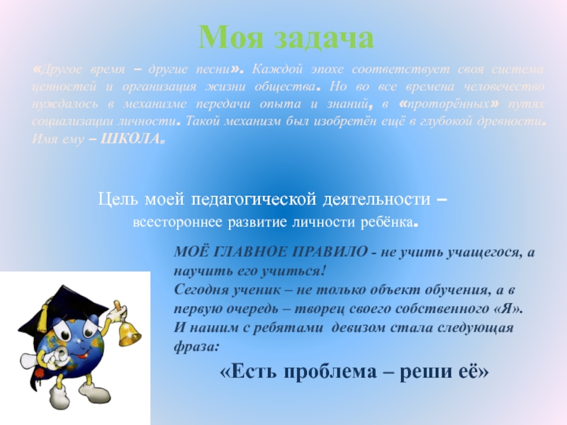 МОЁ ГЛАВНОЕ ПРАВИЛО - не учить учащегося, а научить его учиться!