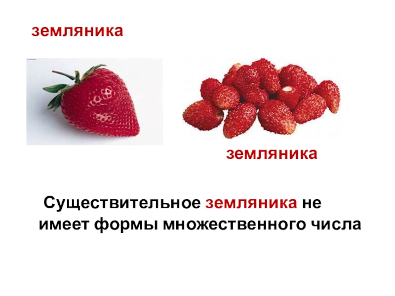рисунки и сравните подписи под картинками. Обратите внимание, иногда для обозначения множества одинаковых предметов используется существительное в форме единственного числа: земляника, молоко и т.п.