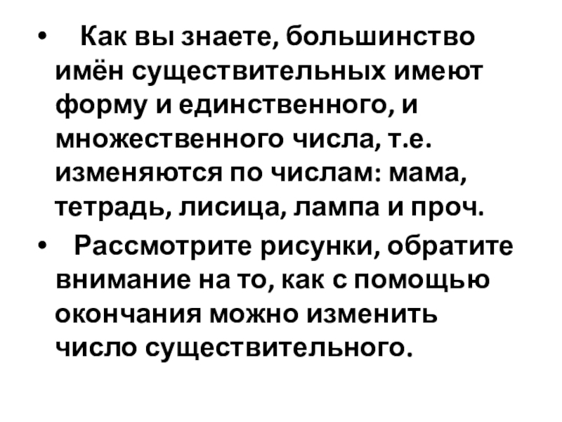 Слайд 3 Как вы знаете, большинство имён существительных имеют форму и