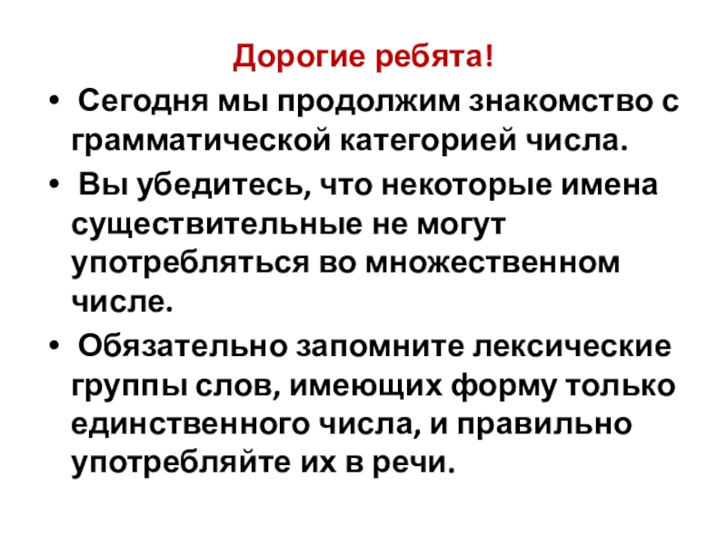 Сегодня мы продолжим знакомство с грамматической категорией числа.