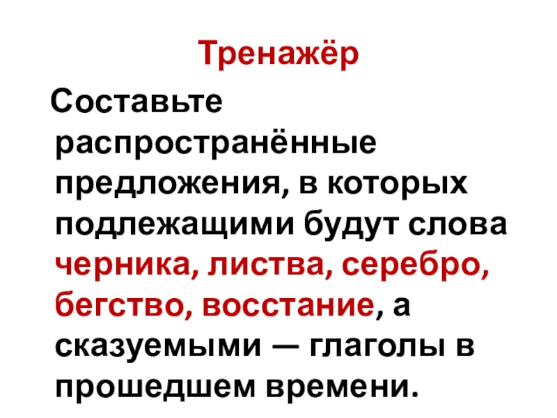 листва, серебро, бегство, восстание, а сказуемыми — глаголы в прошедшем времени.