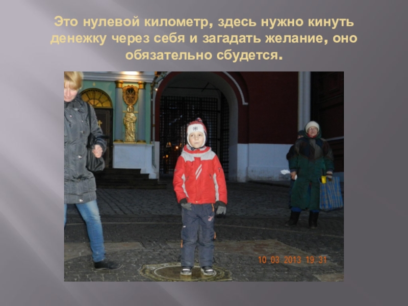 Слайд 6Это нулевой километр, здесь нужно кинуть денежку через себя и загадать