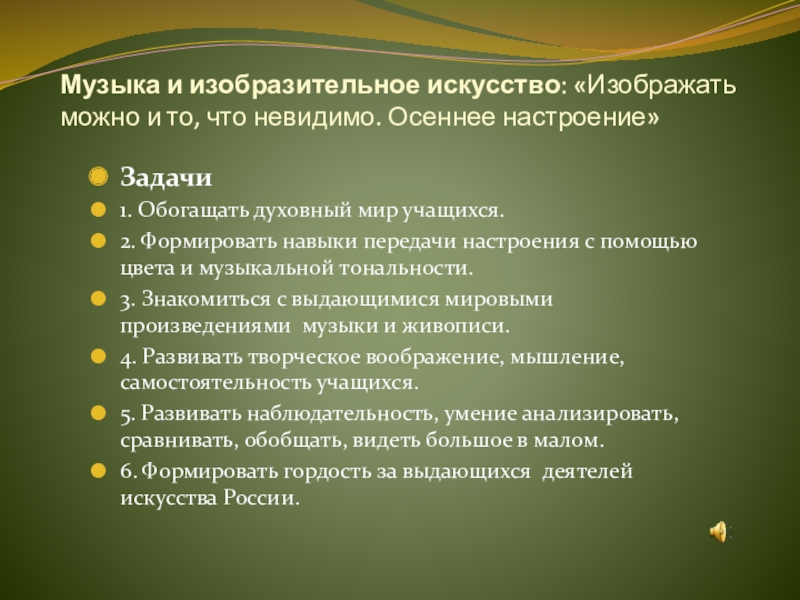 3. Знакомиться с выдающимися мировыми произведениями музыки и живописи.