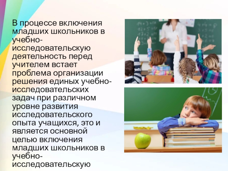 проблема организации решения единых учебно-исследовательских задач при различном уровне развития исследовательского опыта учащихся, это и является основной целью включения младших школьников в учебно-исследовательскую деятельность.