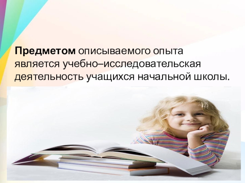Слайд 2Предметом описываемого опыта является учебно–исследовательская деятельность учащихся начальной школы.