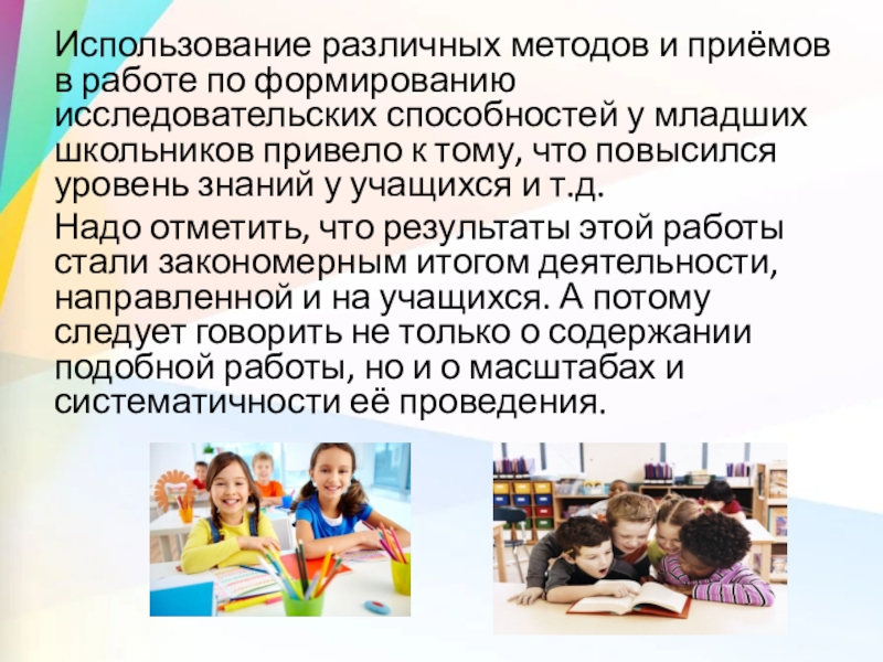 у младших школьников привело к тому, что повысился уровень знаний у учащихся и т.д.