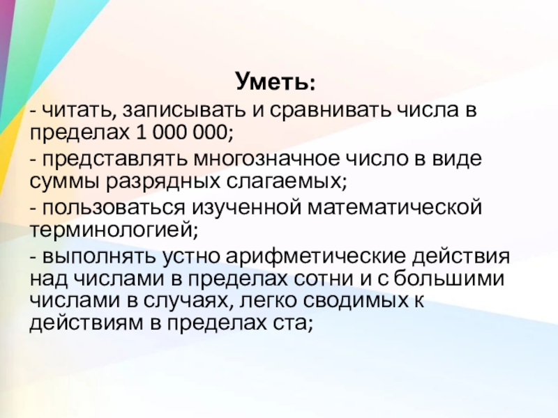 - читать, записывать и сравнивать числа в пределах 1 000 000;
