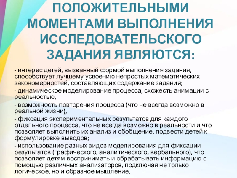 Слайд 16Положительными моментами выполнения исследовательского задания являются: