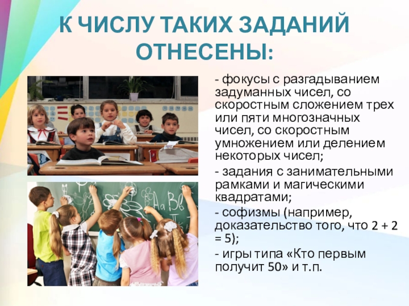 задания, способствует лучшему усвоению непростых математических закономерностей, составляющих содержание задания;