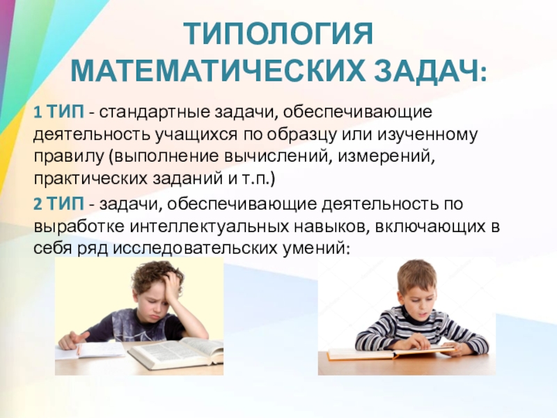 1 тип - стандартные задачи, обеспечивающие деятельность учащихся по