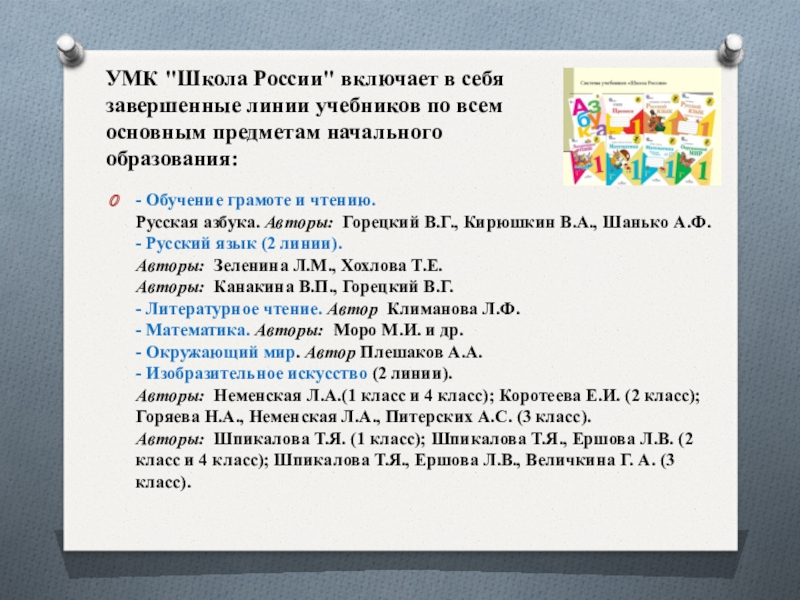 Авторы: Шпикалова Т.Я. (1 класс); Шпикалова Т.Я., Ершова Л.В. (2 класс и 4 класс); Шпикалова Т.Я., Ершова Л.В., Величкина Г. А. (3 класс).