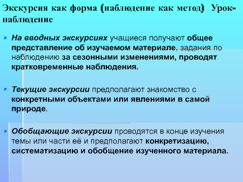 это организация учебно-познавательной деятельности учащихся, соответствующая различным условиям её проведения (в классе, на природе и так далее), используемая учителем в процессе воспитывающего обучения
