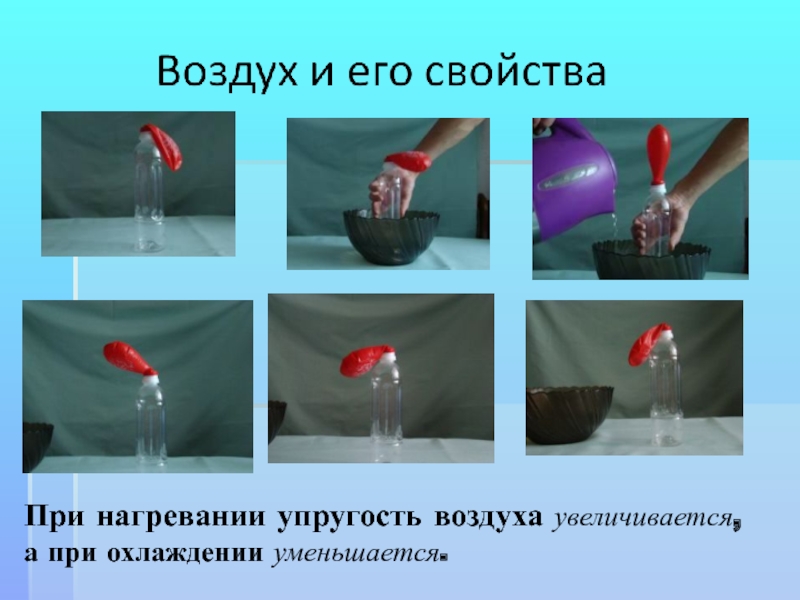 Слайд 73При нагревании упругость воздуха увеличивается, а при охлаждении уменьшается.