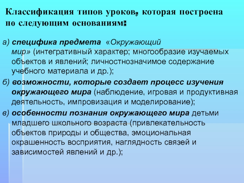 Урок как основная форма организации учебной деятельности по окружающему миру.