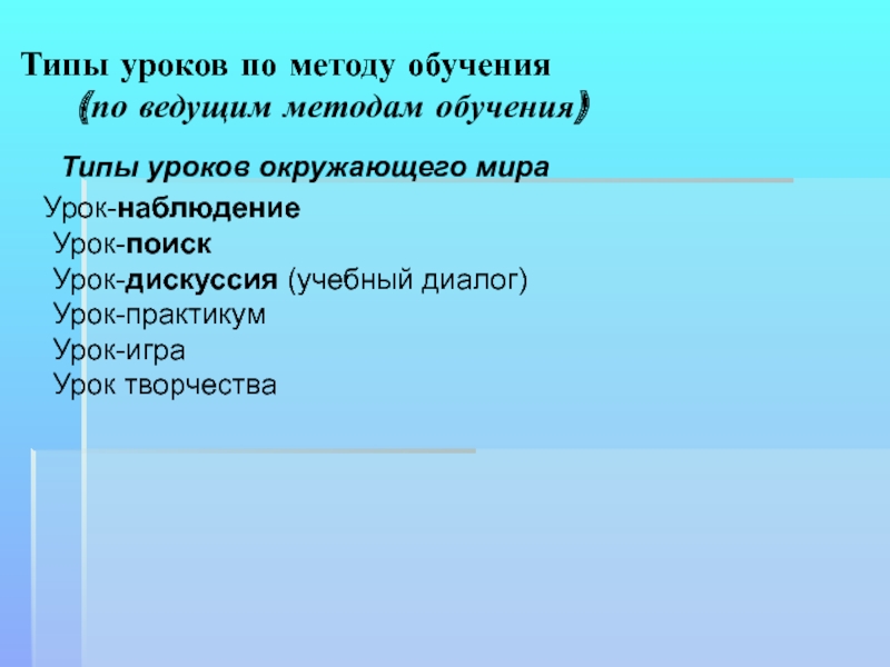 -уроки овладения новыми знаниями, накопления фактического материала, его осмысления;