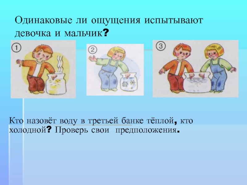 Слайд 69Одинаковые ли ощущения испытывают девочка и мальчик?