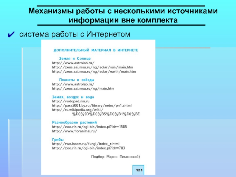 Слайд 65Механизмы работы с несколькими источниками информации вне комплекта