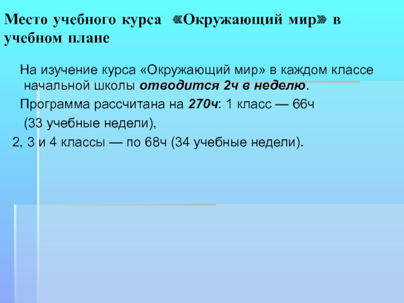 Слайд 10Место учебного курса «Окружающий мир» в учебном плане