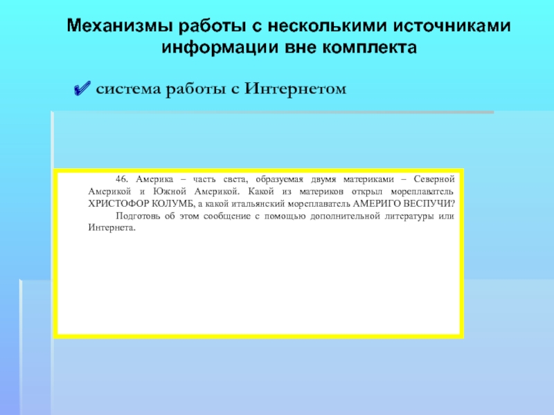 Слайд 64Механизмы работы с несколькими источниками информации вне комплекта