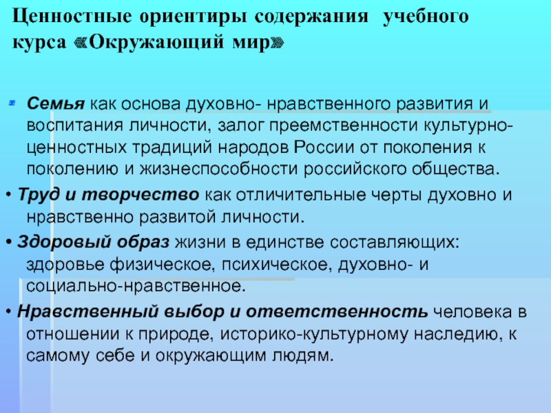 Слайд 11Ценностные ориентиры содержания учебного курса «Окружающий мир»