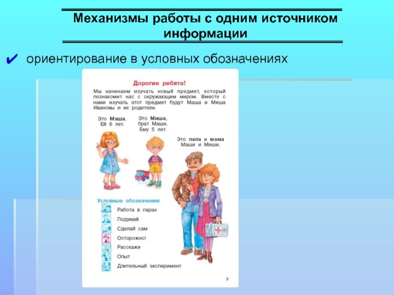 система ориентирования в учебной книге (содержание и оглавление; условные обозначения);