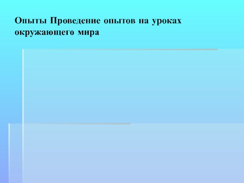 Слайд 68Опыты Проведение опытов на уроках окружающего мира