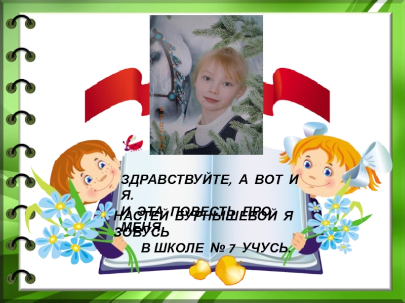 ЗДРАВСТВУЙТЕ, А ВОТ И Я.И ЭТА ПОВЕСТЬ ПРО МЕНЯ НАСТЕЙ БУРНЫШЕВОЙ Я ЗОВУСЬ В ШКОЛЕ № 7 УЧУСЬ.