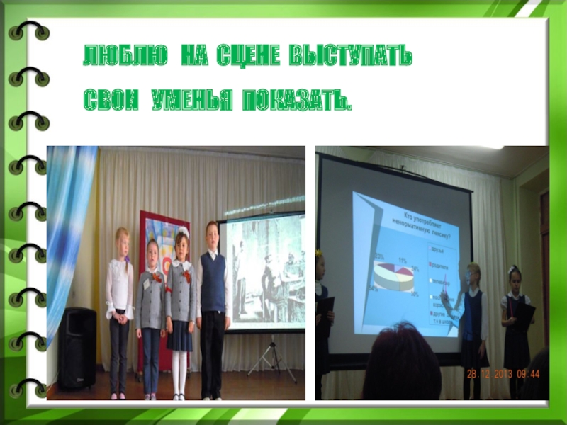 люблю  на сцене выступатьсвои  уменья ПОКАЗАТЬ.