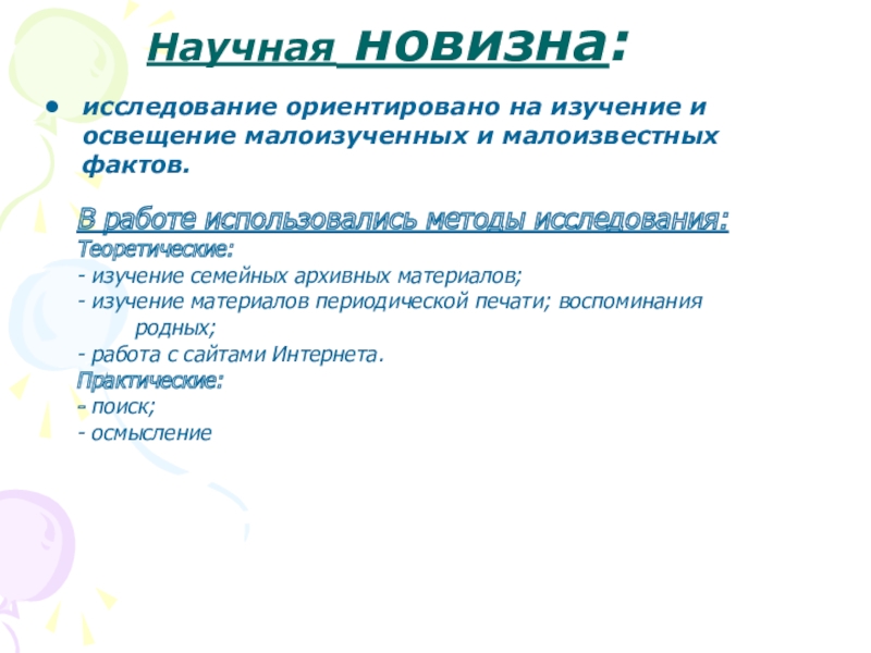 - изучение материалов периодической печати; воспоминания родных;