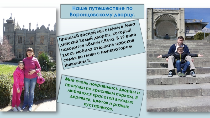 Мне очень понравились дворцы и прогулки по красивым паркам. Я любовался красотой вековых деревьев, цветов и разных кустарников.
