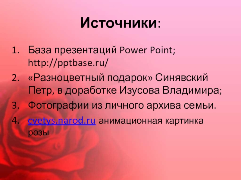 Это сайт презентаций, где можно хранить и обмениваться своими презентациями, докладами, проектами, шаблонами в формате PowerPoint с другими пользователями. Мы помогаем школьникам, студентам, учителям, преподавателям хранить и обмениваться учебными материалами.
