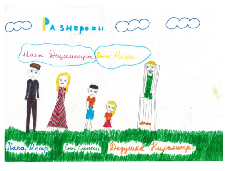 Слайд 1Математическая сказка «Путешествие семьи Размеровых на машине времени» Авторы: Вишнякова Полина, Путейнис Анна,