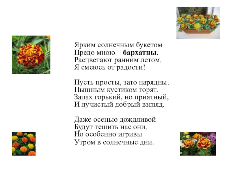 Предо мною – бархатцы.
