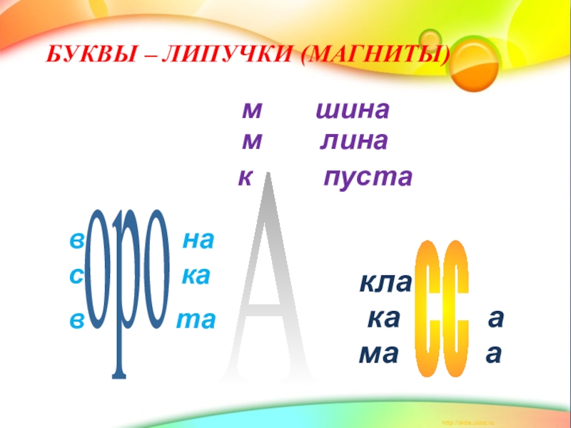 Слайд 16 БУКВЫ – ЛИПУЧКИ (МАГНИТЫ)