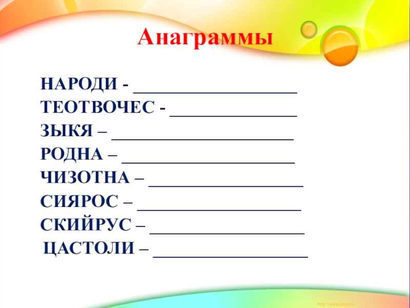 Необходимо найти как можно больше словарных слов, либо нарисовать свою