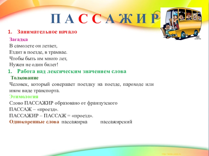 ПАССАЖИР – ПАССАЖ = «проезд».