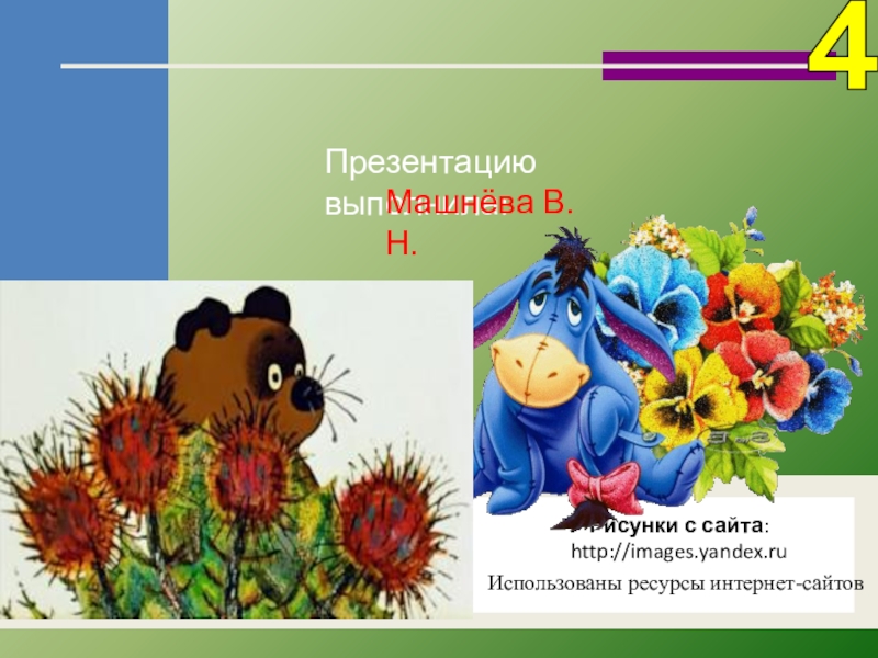 Использованы ресурсы интернет-сайтовПрезентацию выполнила:Рисунки с сайта:http://images.yandex.ru4Машнёва В.Н.