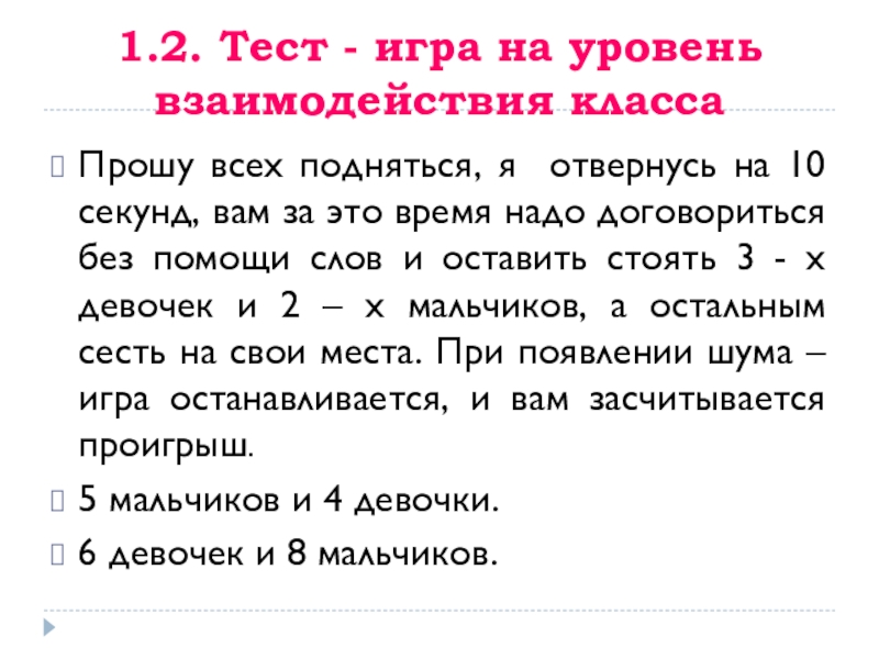 Слайд 51.2. Тест - игра на уровень взаимодействия класса