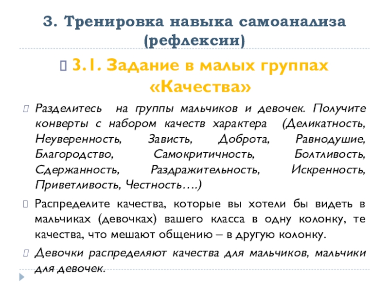 3.1. Задание в малых группах «Качества»