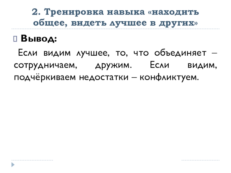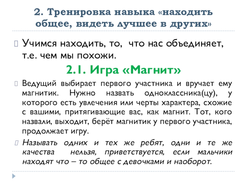 2. Тренировка навыка «находить общее, видеть лучшее в других»