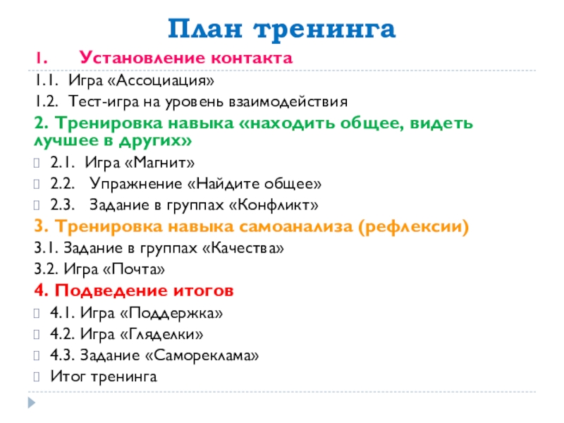 Слайд 3План тренинга