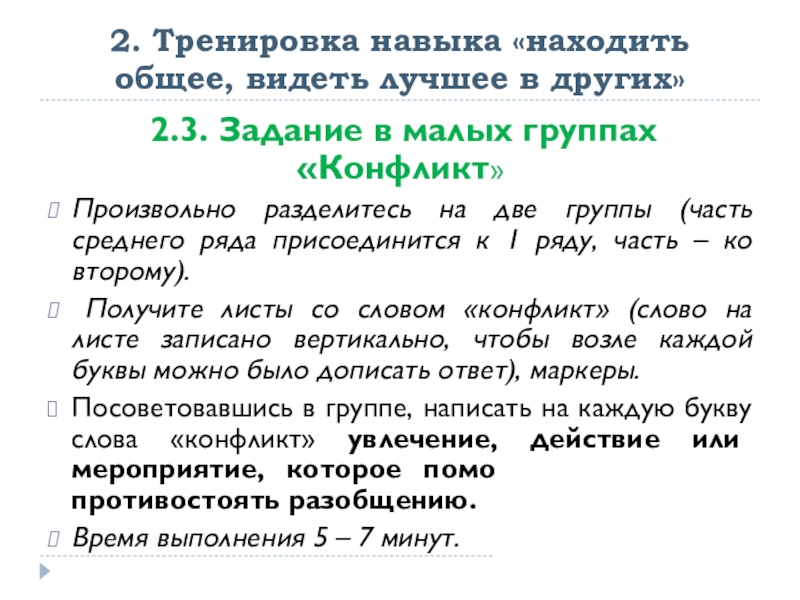 2.3. Задание в группах «Конфликт»