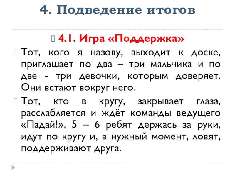 4.1. Игра «Поддержка»