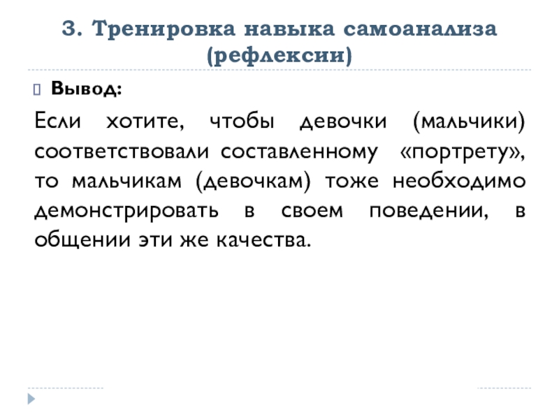 Слайд 133. Тренировка навыка самоанализа (рефлексии)