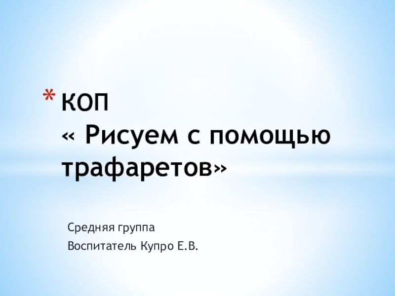 Средняя группаВоспитатель Купро Е.В.КОП « Рисуем с помощью трафаретов»