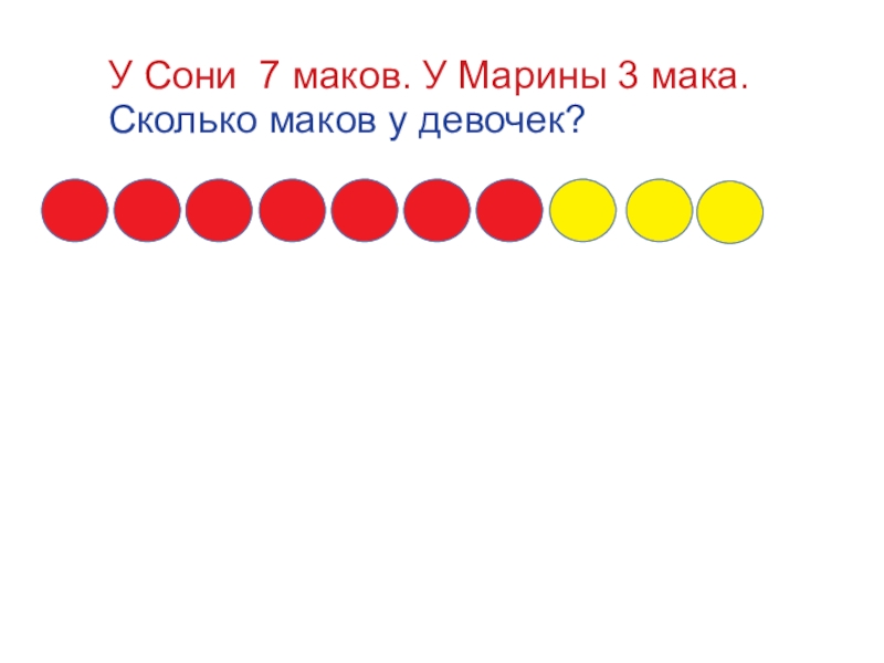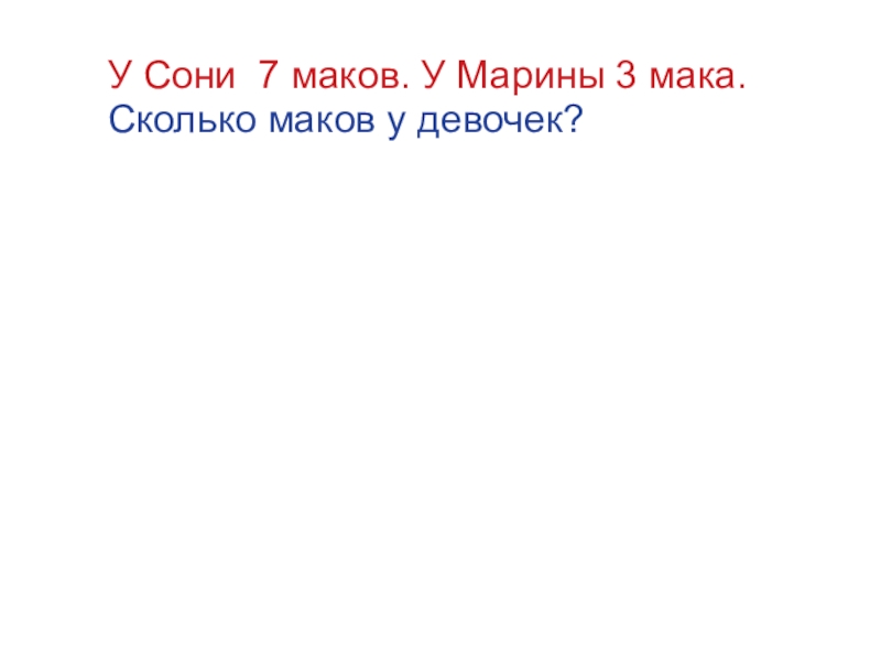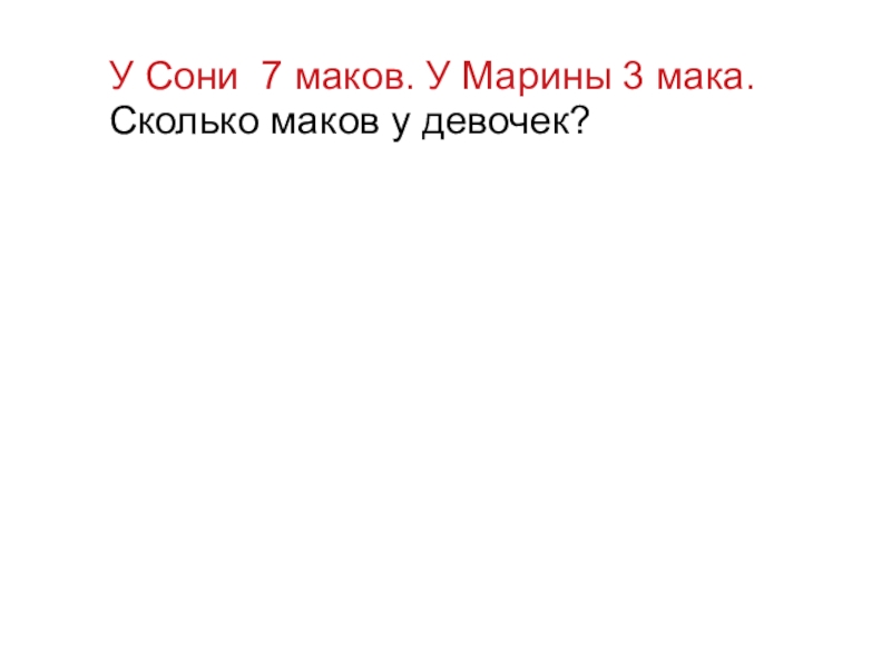 Слайд 18 У Сони 7 маков. У Марины 3 мака.