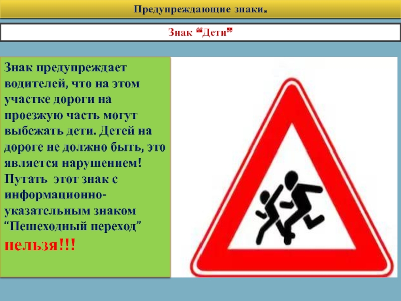 Предупреждающие знаки имеют треугольную форму с белым фоном и красным окаймлением.